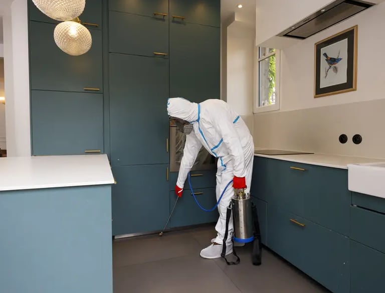 Éradication dans les placards, cuisines, commerces et restaurants.